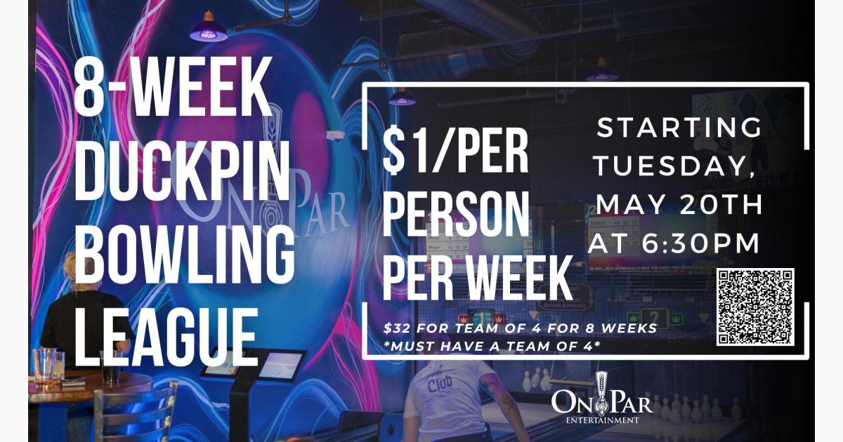 Join our Duckpin Bowling League for just $1 a week per person, starting on May 20th - let's roll some strikes together!