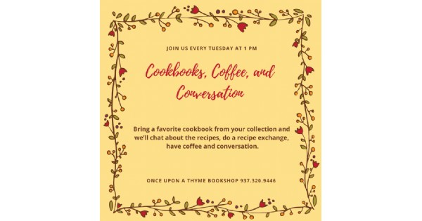 Cookbooks, Coffee, and Conversation is taking place at Once Upon a Thyme Bookshop, which is located at in . Once Upon a Thyme Bookshop - Once Upon a Thyme bookstore is permanently closed.