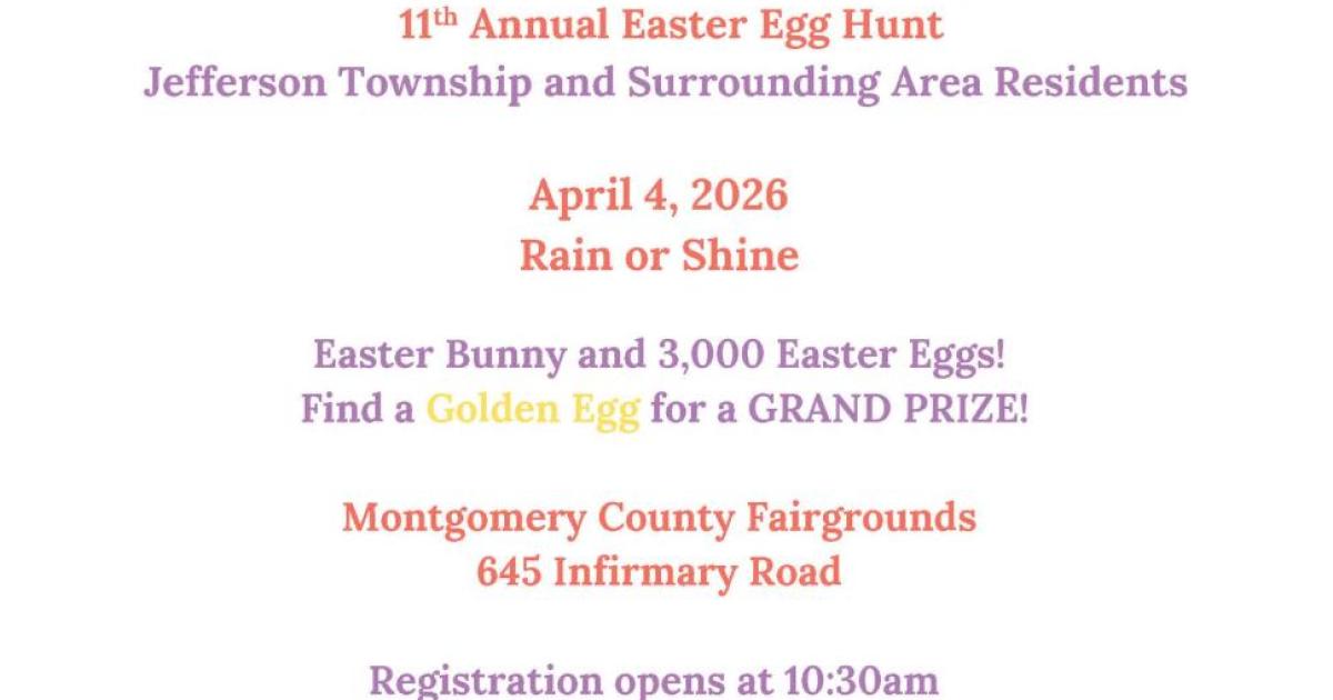 The Montgomery County Sheriff's Office Police Athletic & Activities League (P.A.A.L.) is excited to host our 11th Annual Easter Egg Hunt for Jefferson Township and surrounding area residents!