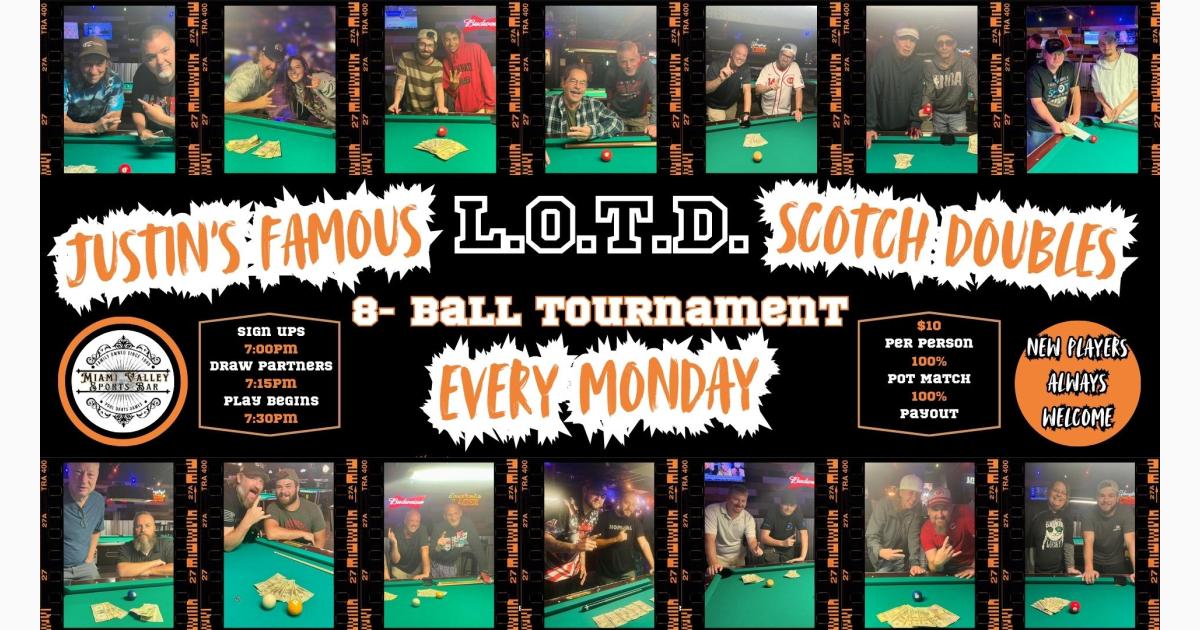 EVERY MONDAY NIGHT at Miami Valley Sports Bar - Justin's Famous Luck of the Draw Scotch Doubles 8-Ball Pool Tournament!!!