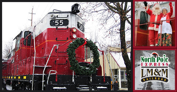 Experience the Joy of the Holidays aboard our most popular event, the North Pole Express.The LM&M Railroad will have our station area decorated with lights for the Christmas season. During your hour-long journey, Santa and his elves will make their way through the train to visit with each family. Each passenger will receive a souvenir bell and prepackaged cookie. Please visit our website for full details of this memorable holiday experience.