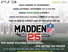 Register to play in the MADDEN 25 TOURNAMENT on Saturday, September 14 at 2:30 in the Chaos Room at Scene75! Visit www.scene75.com to register or drop in and register at the Chaos Room. Choose your own team! The more players, the better the prizes! If 30+ players register, win a $400 credit toward a PS4 or XBOX ONE! The $25 entry fee includes $5 Scene75 Arcade Game Card. Questions: email us at chaosroom@scene75.com. Don't miss out!Links & Tags