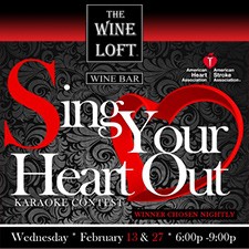 Join us at The Wine Loft to support the American Heart Association of Dayton - Wednesday, February 27, 2013 6-9pm.$5 - Pay to sing; have your favorite person sing or challenge someone else to sing!