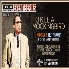 NCM Fathom Events, Turner Classic Movies and Universal Pictures will present the third event in the TCM Event Series by celebrating the 50th Anniversary of To Kill A Mockingbird starring Academy Award® Winning Actor Gregory Peck. Newly restored by Universal for their 100th Anniversary this not to be missed classic will be show in select movie theaters nationwide for only one day on Thursday, November 15th.TCM Event Series