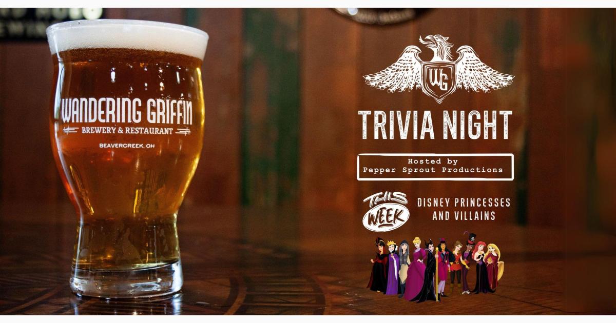 #BeavercreekEvents #FairbornOH #DaytonOhio #WanderingGriffin #TriviaNight #DisneyTrivia #CraftBeer #LocalEvents #OhioBrewery #DisneyFans #DaytonOH #DaytonStrong #DrinkLocal #DrinkBeerMadeHere #BreweryEvents #DisneyBound #DisneyAdult