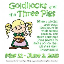 Chased by a wicked witch, Goldilocks takes refuge in the house of the three little pigs…Town Hall Theatre, Centerville - May 31-June 2, 2013