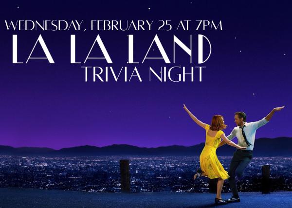 La La Land themed Trivia at On Par Entertainment on February 25th at 7PM! Free to play, prizes for winners. 21+ at 8:30 or once trivia ends.