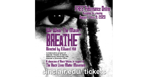 Sinclair Theatre will stream online a series of monologues We Wear The Mask: Breathe, free of charge beginning August 7th and available through August 9th. This compilation of Black Voices is a collaboration between Sinclair Theatre, Wilberforce University and Sinclair’s Office of Diversity. Monologues were written by Black authors and are being performed by current and former Sinclair actors in support of the Black Lives Matter movement. The project was aptly titled by its director Edward Hill, Vice President of Academic Affairs and Strategic Initiatives at Wilberforce University.